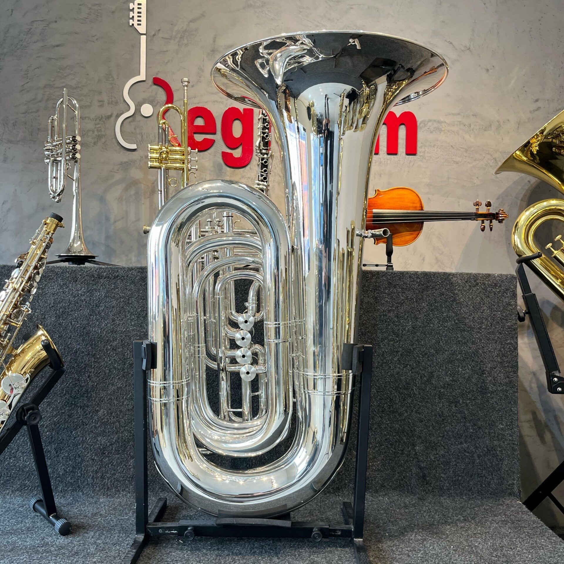 A tuba surgiu no século XIX, sendo criada em 1835 na Alemanha. Com sua sonoridade grave, tornou-se a base das bandas e orquestras. Hoje, é essencial tanto na música erudita quanto em estilos populares. Também possui variações como o sousafone e a helicon. Sua imponência sonora garante destaque em formações musicais diversas.